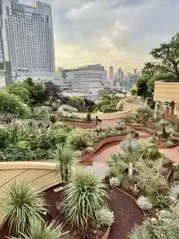 Namba Park, this rooftop garden hidden in the bustling heart of Osaka, feels like a green paradise floating above the city. Climbing the steps, layers of greenery come into view, with flowers, trees, and winding paths together creating a picturesque scene. The gentle afternoon sunlight illuminates every leaf and petal as I walk along the park’s terraced platforms, feeling the breeze softly brush my cheeks. Where flowers bloom in abundance, colorful blossoms compete under the blue sky, attracting visitors’ eyes and leaving beautiful moments for my camera. The park’s design not only brings nature into the city but also draws people’s spirits back to a place of tranquility. From the upper platforms, overlooking Osaka’s busy streets and surrounding modern buildings, the expansive view and the peaceful natural surroundings intertwine, making it hard to leave. Namba Park is not just a green shield in the city but a sanctuary for finding peace and beauty.