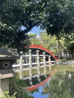 Sumiyoshi Taisha is a shrine located in Sumiyoshi Ward, Osaka. When I visited, I was drawn in by its unique architectural style and peaceful atmosphere. What left the strongest impression was the main hall built in the Sumiyoshi-zukuri style, designated as a National Treasure. The vivid contrast of the vermilion pillars and white walls created a distinctive ambiance unlike any other shrine. The grounds are spacious, and the large arched bridge called the Taiko Bridge was even more impressive in person than in photos. Crossing it made my feet feel like they were shaking, which was a bit nerve-wracking. As I leisurely walked around the shrine buildings, I felt a calmness that made me forget the hustle and bustle of the city, and seeing the locals come to pray was soothing. This shrine, long revered as a protector of safe voyages and prosperous business, exudes a deep sense of history and the heartfelt wishes of the people, making it a place of tranquility.