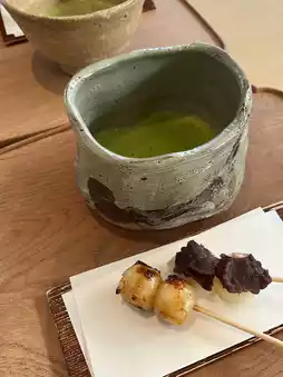 The menu is limited to a tea set, with a choice of matcha, sencha, or bancha. It comes with grilled dango and costs 500 yen.