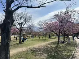 Here you’ll find vast areas of half-bloomed cherry blossoms, with pink and white as far as the eye can see, offering an incredibly wide view and a spectacular scene! Many locals set up grills for picnics here, full of lively atmosphere 🎇 The only downside is that Sumiyoshi Taisha Shrine basically has no cherry blossoms, so no need to make a special trip.
