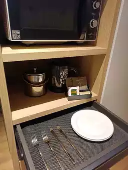 The lobby is actually quite spacious, with a stylish theme, and it’s also a family-friendly hotel🙌🏻 Inside the hotel, there is a small playhouse, a self-service laundry room, a gym, and a fairly large shared coffee lounge area (with refrigerator, small oven, ice machine, tableware, coffee, tea, and hot/cold water available).