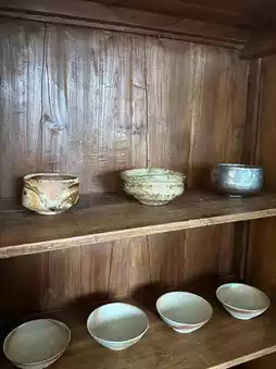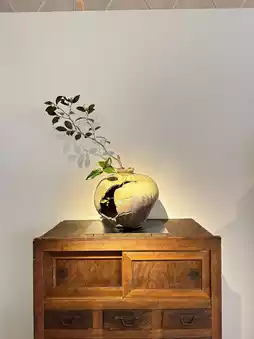 Stepping into wad feels like entering a dream of Japanese aesthetics. The place is filled with all kinds of uniquely crafted utensils, each radiating its own charm. On my second visit, I happened to catch Yousuke Kojima’s solo exhibition. I had been deeply attracted by this artist’s work before; the unique green color in his pieces is actually made from the ashes of burned red pine wood. This distinctive creative method gives the works a special vitality. For example, the square plate in the picture has a silver part made of real silver on the surface, which gradually changes color over time, as if telling the story of time itself, making one look forward to this transformation.