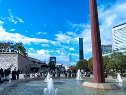 Osaka Castle Park is one of the most famous attractions in Osaka, blending history, nature, and modern facilities. One of the park's most iconic features is its fountain, especially popular in spring and summer as a favorite spot for tourists to take photos.