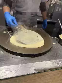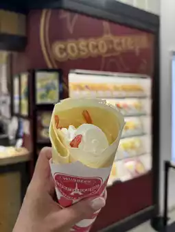 By chance, we came here after having shabu-shabu today and discovered this place. They offer a variety of crepes, both savory and sweet, with many filling options to choose from according to your preference. The shop makes the batter fresh right in front of you. The menu item we ordered was a strawberry crepe cake with ice cream. It was delicious, sweet, creamy, and perfectly balanced, with strawberries to cut through the richness.