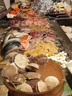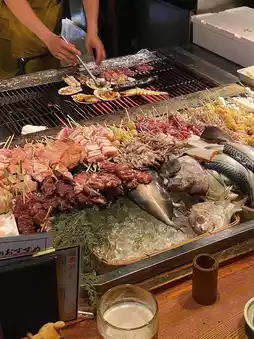 The chef grills and prepares the food right in front of you, and the grilled dishes are served directly to your table! Very fun