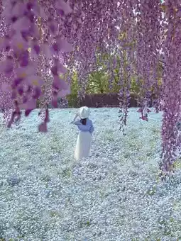 Wisteria and Nemophila Swaying in the Spring Breeze