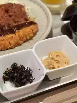 The Waraji Tonkatsu Set Meal comes with rice, miso soup, and obanzai, making it perfectly balanced 🙆♀️