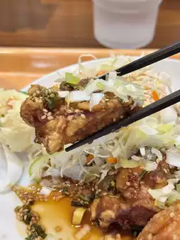 Juicy yurinchi chicken coated in plenty of green onions and a sweet and sour aromatic sauce, with a strong flavor that goes perfectly with rice!!