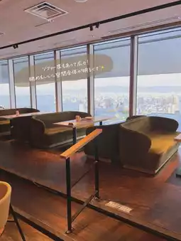 in a cozy sofa seat with a great view on the 14th floor of Harukas.