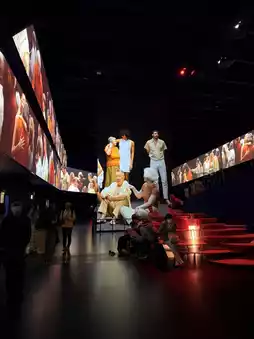 After exploring the ocean, visitors enter a bright orange space representing passion and sunshine. Here, a postcard wall made up of Spanish postcards is paired with screens introducing Spain’s scenery, evoking the warm and hospitable spirit of Spain, welcoming travelers from around the world with open arms. The most crowded area is the Spanish wine sales section, and the Spanish restaurant at the exit often has long lines. It is recommended to visit after dark: the sunrise-themed stairway is stunning, and there is almost no wait to enter at night. During the day, performances take place in the plaza, which passersby can enjoy and take photos with the performers.
