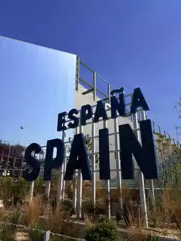 The Spain National Pavilion, designed collaboratively by Enorme Studio and two other architecture and design firms, uses the ocean and the sun to highlight similarities with Japan.