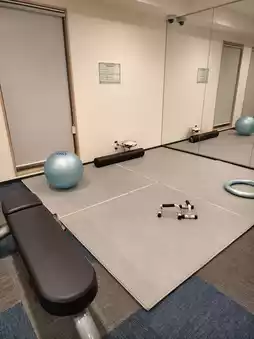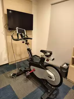On the 2nd floor, there are two coin-operated washing machines, a soda machine, and a gym room. The gym room has one stationary bike, two treadmills, fitness balls, and more.