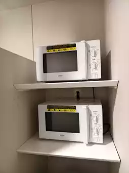 There is a microwave in the room for heating food.