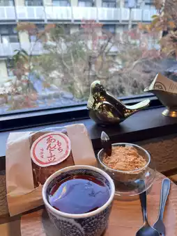 Stepping inside, you are greeted by a rich Japanese garden atmosphere, as if entering a time tunnel. The first floor sells take-away sweets like dorayaki; coffee is served on the second floor. Find a seat by the window, bask in the sunlight, and enjoy ultimate relaxation.