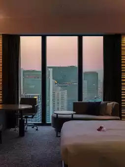Conrad Osaka is located on the upper floors of a skyscraper above Nakanoshima, offering an unobstructed view. Waking up in the morning, you can see the entire Osaka port and Abeno Harukas, while the nighttime scenery is breathtaking, with the city sparkling like diamonds stretching out below—a peaceful escape from the world.