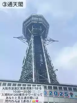 🚙 No need! Easy train travel! If you come to Osaka, you definitely want to go! We've summarized the classic route✨ Feel free to copy it and make good use of it ………………………………………………………………… ❶ Glico Sign 1-10-4 Dotonbori, Chuo-ku, Osaka City 🚃 2-minute walk from Namba Station (Exit 14) on the Osaka Metro Midosuji Line ・The riverside down the stairs from the bridge is less crowded and perfect for taking photos ・The area is full of interesting signs! ………………………………………………………………… ❷ Shinsekai 2-chome, Ebisuhigashi, Naniwa-ku, Osaka City 🚃 5-minute walk from Dobutsuen-mae Station on the Osaka Metro Midosuji Line ・Lots of eye-catching 3D signs! ・Lots of Billiken statues! There’s also Billiken Shrine (photo 5) 6-1 Ebisuhigashi 3-chome, Naniwa-ku, Osaka City If you get tired, take a break at Daruma Main Store (photo 6) 3-9 Ebisuhigashi 2-chome, Naniwa-ku, Osaka City Mon–Thu 11:00–22:30 Sat–Sun 10:30–22:30 Kushikatsu from ¥130 Average cost per person ¥2000~ Freshly fried kushikatsu and 🍺 are the best! ………………………………………………………………… ❸ Tsutenkaku Tower 18-6 Ebisuhigashi 1-chome, Naniwa-ku, Osaka City 🚃 3-minute walk from Exit 3 of Ebisucho Station on the Osaka Metro Sakaisuji Line *Located in the Shinsekai area, so you can also walk from Dobutsuen Station 10:00–20:00 Admission ¥1200 There’s even a slide! 🗼 Even Tokyo Tower can’t compare to Tsutenkaku that you see with your own eyes! 😳🩷 ………………………………………………………………… ❹ Abeno Harukas 1-1-43 Abenosuji, Abeno-ku, Osaka City 🚃 JR Tennoji Station, Kintetsu Osaka Abenobashi Station, Osaka Metro Midosuji Line and Tanimachi Line Tennoji Station, Hankai Tramway Uemachi Line Tennoji-ekimae Station 9:00–22:00 The tallest building in Osaka Has an observation deck, art museum, hotel, and department store ………………………………………………………………… Save this and go check it out✨↓ I’ll be so happy if you follow me 🥹🩷🙏 ………………………………………………………………… #OsakaGuide #Osaka #OsakaTrip