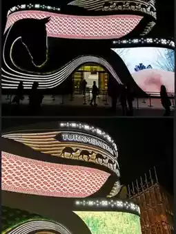 - Saudi Pavilion: A 360-degree LED dome simulating desert auroras, with a barefoot sand installation replicating geological textures.