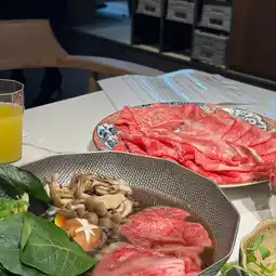 Kitamura Sukiyaki is a chain brand, and other branches have high ratings on popular review platforms. We walked in spontaneously that day, thinking the seats by the big cherry blossom tree would be fully booked, but luckily we snagged a window seat near a smaller cherry blossom tree! Pink petals drifted down with the breeze as we dipped wagyu beef into the hot pot, enjoying both the visual and taste sensations~