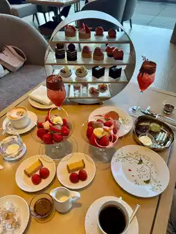 The desserts here are exquisitely crafted like works of art. The strawberry tart is fresh and juicy, with the sweet and tangy strawberries paired with a crispy tart crust, offering a rich texture; the chocolate desserts are rich and creamy, melting in your mouth. The savory items are equally impressive, with small sandwiches, savory pies, and more, perfectly balanced in flavor. Paired with a cup of aromatic coffee or a special fruit juice, it’s truly a feast for the taste buds.