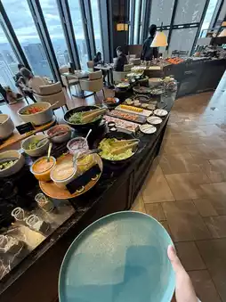 At “Atmos Dining,” we savored a fusion of Japanese and Western dishes made with local ingredients. 🍽️🍷 My grandmother was especially touched by the beautifully presented dishes and the surprise birthday cake prepared by the staff. She said, “Celebrating my birthday in such a wonderful place feels like a dream.” 🎂💐 Additionally, we spent a luxurious time in the Executive Lounge, enjoying afternoon tea and evening cocktails while overlooking the city of Osaka. 🍸🫖