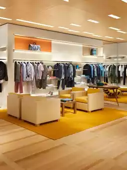 The exterior of this flagship store was designed by master architect Jun Aoki, while the interior design was crafted by New York design giant Peter Marino. The design inspiration comes from a sailboat, cleverly echoing Osaka's long-standing tradition as an important port in Japan. Jun Aoki's white building is transparent and bright, inspired by the ancient Hinoki wooden sailboats that once transported goods between Osaka and Tokyo (formerly Edo). The metal lattice patterns on the building's ground floor add a sense of purity to the facade, as if the boat is gently floating on the water.