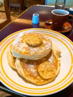 The moment it’s placed in front of you, the aroma of the pancakes fills the air.