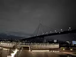 The bridge and Ferris wheel are lit up, creating a fantastic atmosphere🍷✨