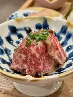 Grated daikon was hidden under the Omi beef tataki, giving it a refreshing taste✨