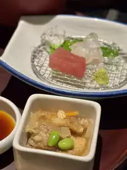 The sashimi portions are small but you can enjoy two kinds: tuna and sea bream, very satisfying โ