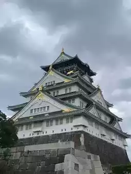 Seeing Osaka Castle from the train window just before arriving at Osaka Castle Park Station was exciting. Stepping out of the station, I was thrilled to see Osaka Castle Hall and headed toward Osaka Castle. It was larger and more beautiful than I had imagined, though I wished for clearer skies.