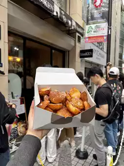 Famous dessert shop in the Shinsaibashi area with a very long line