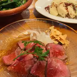 I have to recommend a few dishes that never disappoint! The "Beef Tongue Roast Beef" is unbelievably tender, melting in your mouth and making you want more with every bite; the "The Upper Harami (Outside Skirt) Grill" uses the upper diaphragm part of the beef, perfectly grilled with a crispy exterior and juicy interior, rich in fat but never greasy. Paired with the "Warm Spinach Salad," it’s refreshingly perfect to cut through the richness! Also, the "Bacon Tomato Pasta" features a rich sauce coating chewy noodles, and I devoured it as soon as it arrived!