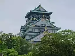 Looking up, you can see Osaka Castle. After climbing to the main tower, you can also buy a "Castle Stamp." Since I went up to the main tower, I definitely had to buy one! If you want to buy tickets, it’s recommended to purchase a QR code ticket on Trip.com now, so you don’t have to wait in line too long and can enter Osaka Castle quickly!
