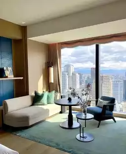 The 200-meter-high sky lobby is stunning! The cloud-level view overlooks the city skyline.