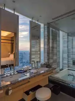 The corner room offers a wide view, with the sea horizon in sight, and the bathroom 🛁 even has a scenic view, the night scenery is breathtaking! The outer glass is so clean it's hard to tell if it's there, they really put effort into cleaning, it feels very thoughtful.