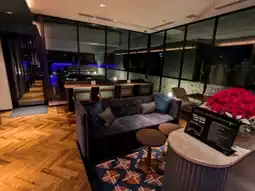 The rooftop lounge (exclusive to upper floors) offers< complimentary drinks and snacks in a relaxing atmosphere .