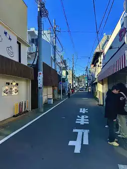 as a pedestrian street filled with many restaurants, cafes, and shops. The lively atmosphere is full of laughter and the aroma of delicious food.