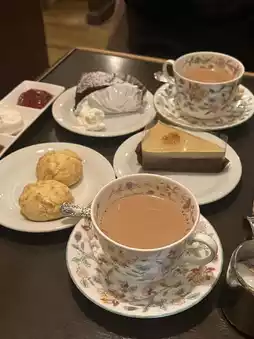 The must-try "Royal Milk Tea" is absolutely legendary! The layers of tea and milk flavors are distinct, truly worthy of being the signature drink. One sip instantly transports you back to the Victorian era 🇬🇧 The scones come out warm, paired with blueberry & raspberry jam plus cream, rich and not overly sweet, bursting with happiness 🥰 The cakes are decent but shine with the ritual of English tea treats~