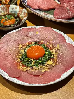 Had an epic feast with friends, ordering a full Kobe beef yakiniku platter, raw egg skirt steak, plus cheesy stone pot bibimbap. The two of us only spent 14,000 yen💰 The Kobe beef platter is so tender it’s like A5 grade, dipping it in raw egg makes it insanely flavorful, and the raw egg skirt steak is a yakiniku lover’s dream🥩