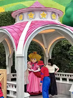 As soon as we entered, we found ourselves in a full fantasy world with music, characters greeting us, and Japanese people dressed in theme costumes like they stepped out of an anime 🎀 We ran straight to the Butterbeer shop in the Harry Potter zone! It felt like being in the movie, with Hogsmeade village covered in fake snow, so beautiful and cozy 🍺💫