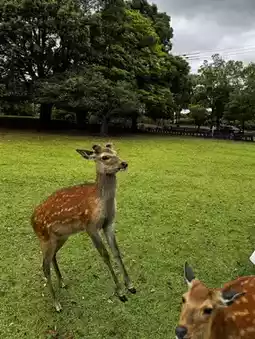 We visited the Nara Deer Park in the afternoon, unfortunately it was cloudy. The deers were so cute and gentle, deers would bow if they noticed you carrying food, politely asking if you could feed them. It added a magical touch to the experience of being surrounded by them! ⚠️ But be cautious! If they don’t get food, some of them might be quite aggressive.