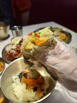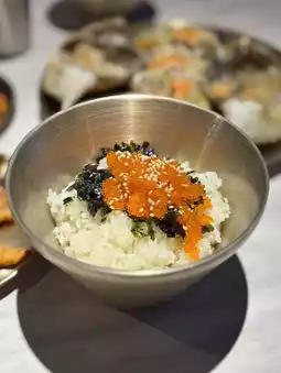 The blue crab jjigae’s rich broth infused with crab umami and spicy soup is superb. Enjoying the crab meat while savoring its deep richness was a delight.
