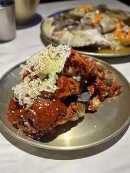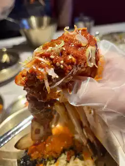 The Ganjang Gejang’s rich soy sauce flavor enhances the sweetness of the crab, and its sticky texture is exquisite. The Yangnyeom Gejang’s spicy seasoning is addictive.