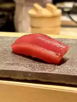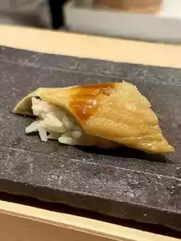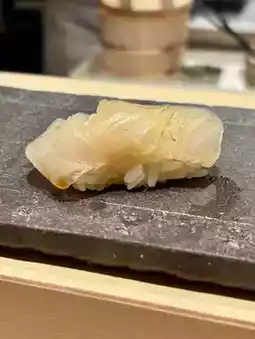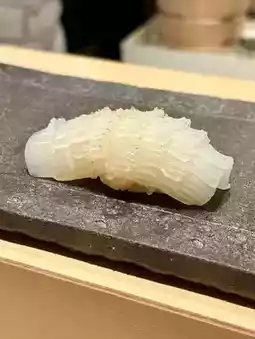 The first bonito features a moist texture and rich flavor, with umami spreading the more you chew. The swordtip squid has a beautiful translucent texture and pronounced sweetness, offering a sticky mouthfeel to enjoy.