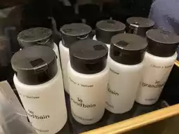 The amenity brand is "le grand bain." The room I stayed in had a unit bath, but it was spacious and comfortable.