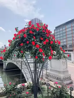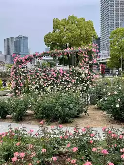 #japanitinerary A very good spot surrounded by two side of the river, beautiful flowers around. Better to go there when it's sunny to enjoy the view and energy. Great place to visit if you're in Osaka City. There’s the most popular item is the ''Rose Soft Serve Ice Cream". The sweet and sour soft serve ice cream with a slight rose scent is delicious and recommended. Of course, dogs are allowed on the terrace.