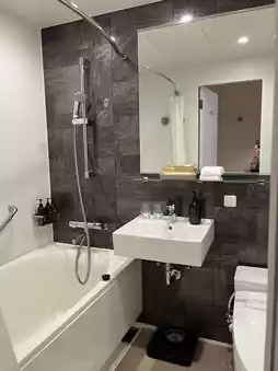 The room itself is so spacious, especially considered in Japan. The room is so modern and bed is super comfortable, it has a mini kitchen with fridge and stove as well. Toilet is clean and come with a bathtub, everything is perfect here!