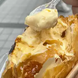 Beyond crispy, it’s a flaky mille-feuille filled with custard packed with vanilla beans... an unbeatable combo.