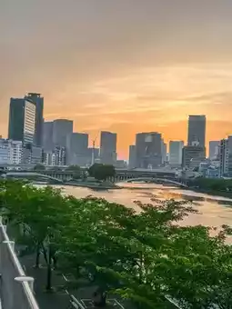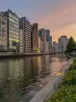 Lately, the clouds often turn red around sunset, and when you take a walk, you can encounter very beautiful scenery. The riverside path stretches from Yodoyabashi to Tenmabashi, making it easy and pleasant to walk. The breeze is so comfortable that you almost forget you're in the city. Just sitting on a bench and watching the sunset is a very healing time.