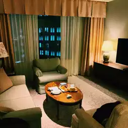 Room facilities: We were lucky to get a suite, although on a low floor. I was so excited as soon as I entered, it’s so beautiful! Full of American-style decor. The headboard above the bed is also specially carved.